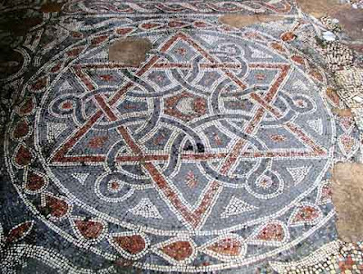 Christian Star surrounding Muslin Crescent in a Mosaic Pavement at the 8th century Monastery of St. Euthymius in Mishor Adumin. The Monastery was built by members of an Arab Tribe which